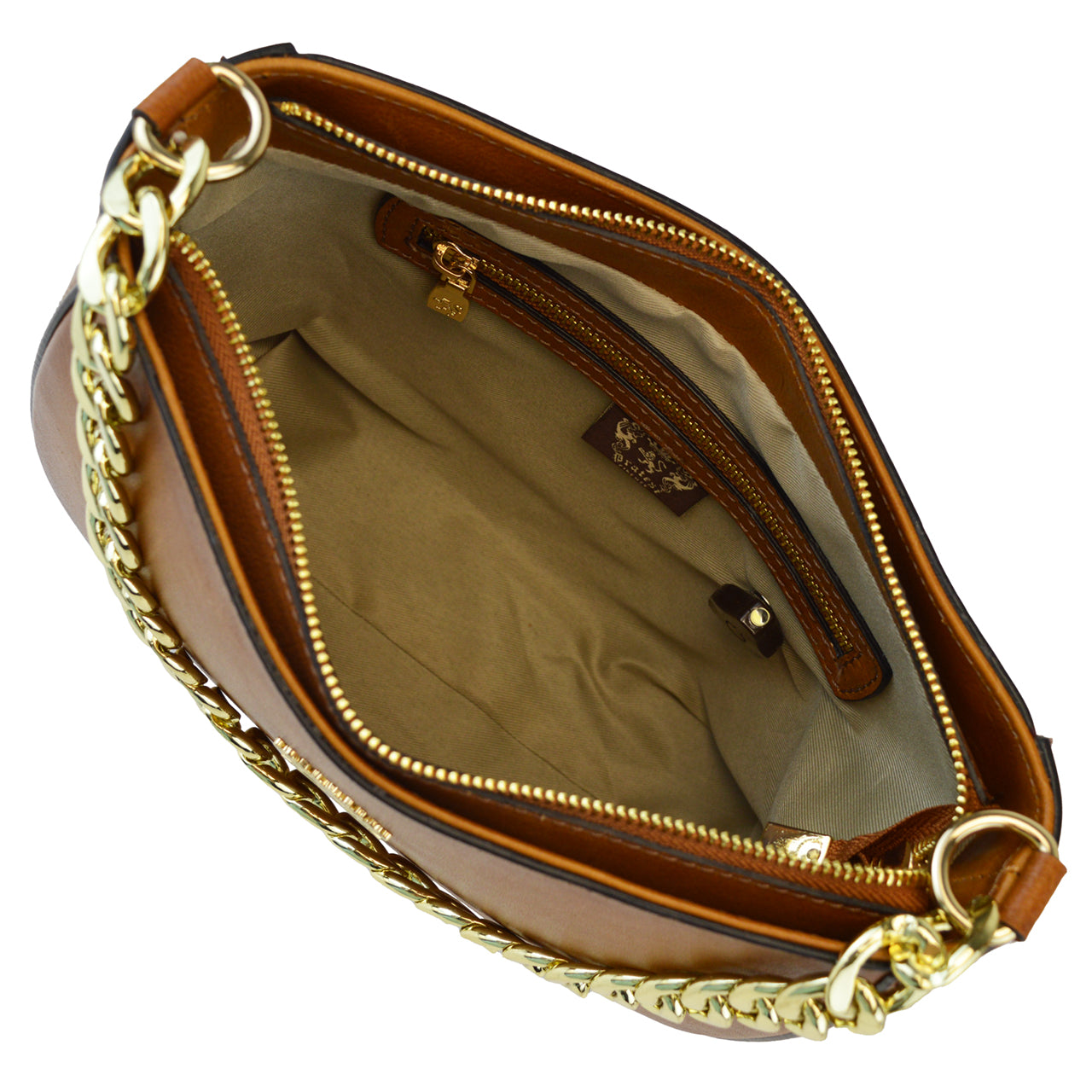 The Rimaggio handbag is crafted from genuine Italian vegetable dyed leather and distinguished by its refined semi-rigid structure. It features a spacious main compartment with secure zipper closure. Inside, an additional zippered pocket—ideal for organizing documents, cards, and small essentials—is complemented by a timed LED light, allowing effortless visibility of your belongings at any moment.