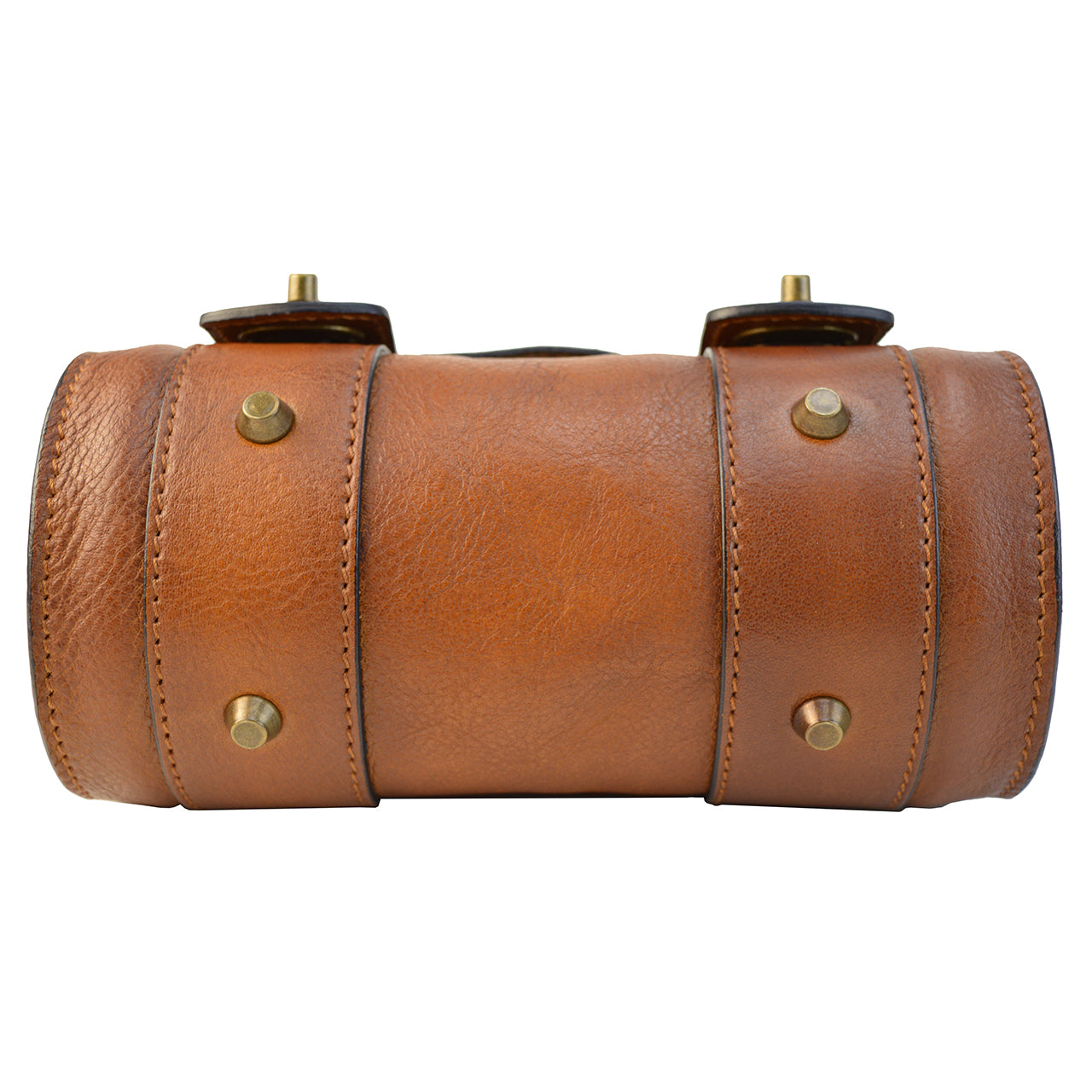 The first polymerization of the leather is done by Pratesi, using a secret formula of waxes and natural products. The result is a high-quality bag that is both durable and stylish. The SanBernardo Clutche is designed to complement any outfit, making it a versatile choice for any occasion. It features a twist lock and a single large compartment, making it practical and functional.